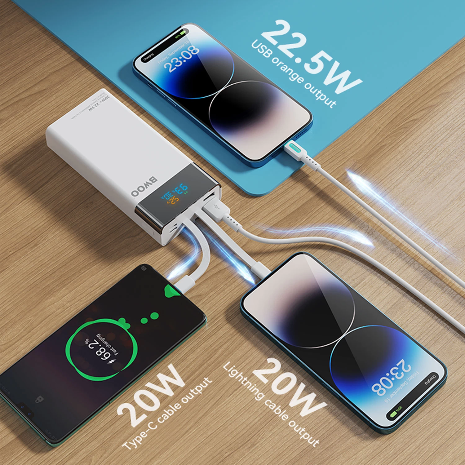 20000mAh 22.5W Fast Charge Power Bank with Cables