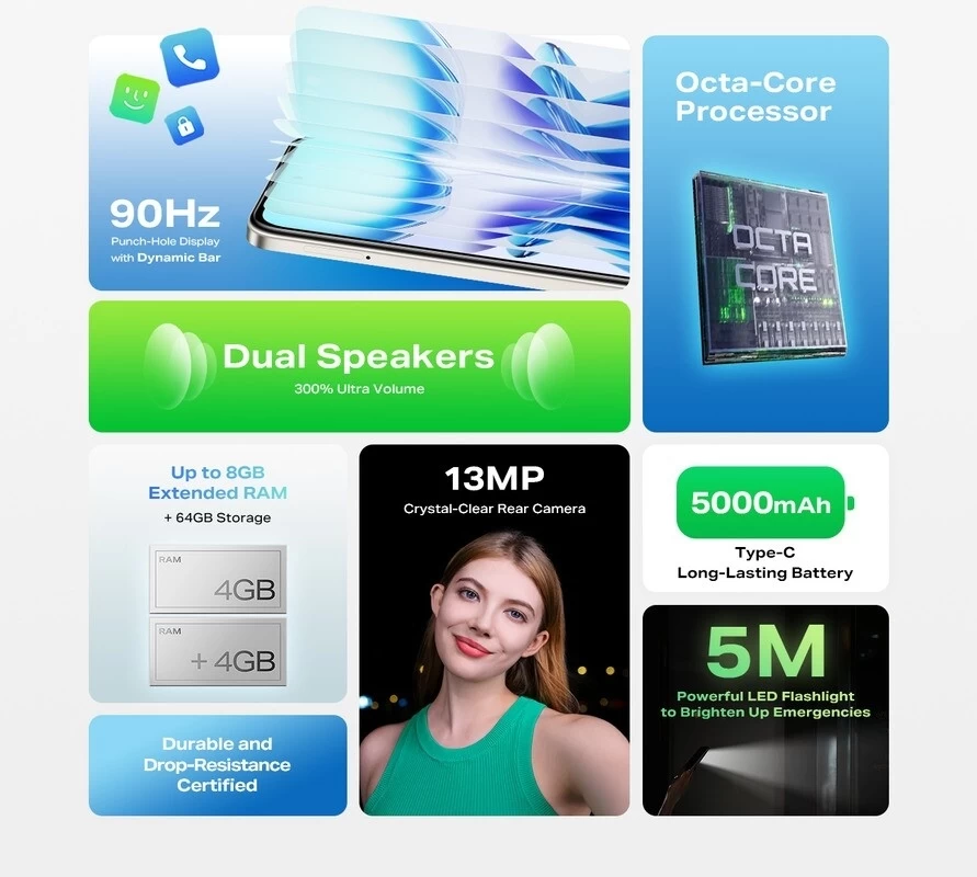 The Infinix Smart 9 HD is an affordable smartphone designed to offer essential features. With 64 GB of internal storage, you have enough space for your apps and files. The 3 GB RAM ensures smooth usage for daily tasks. The 8 MP main camera is suitable for basic photography. The 5000 mAh battery provides good battery life, allowing you to stay connected all day. The phone comes in grey, giving it an elegant and modern look. Additionally, it comes with a 12-month warranty for extra peace of mind.