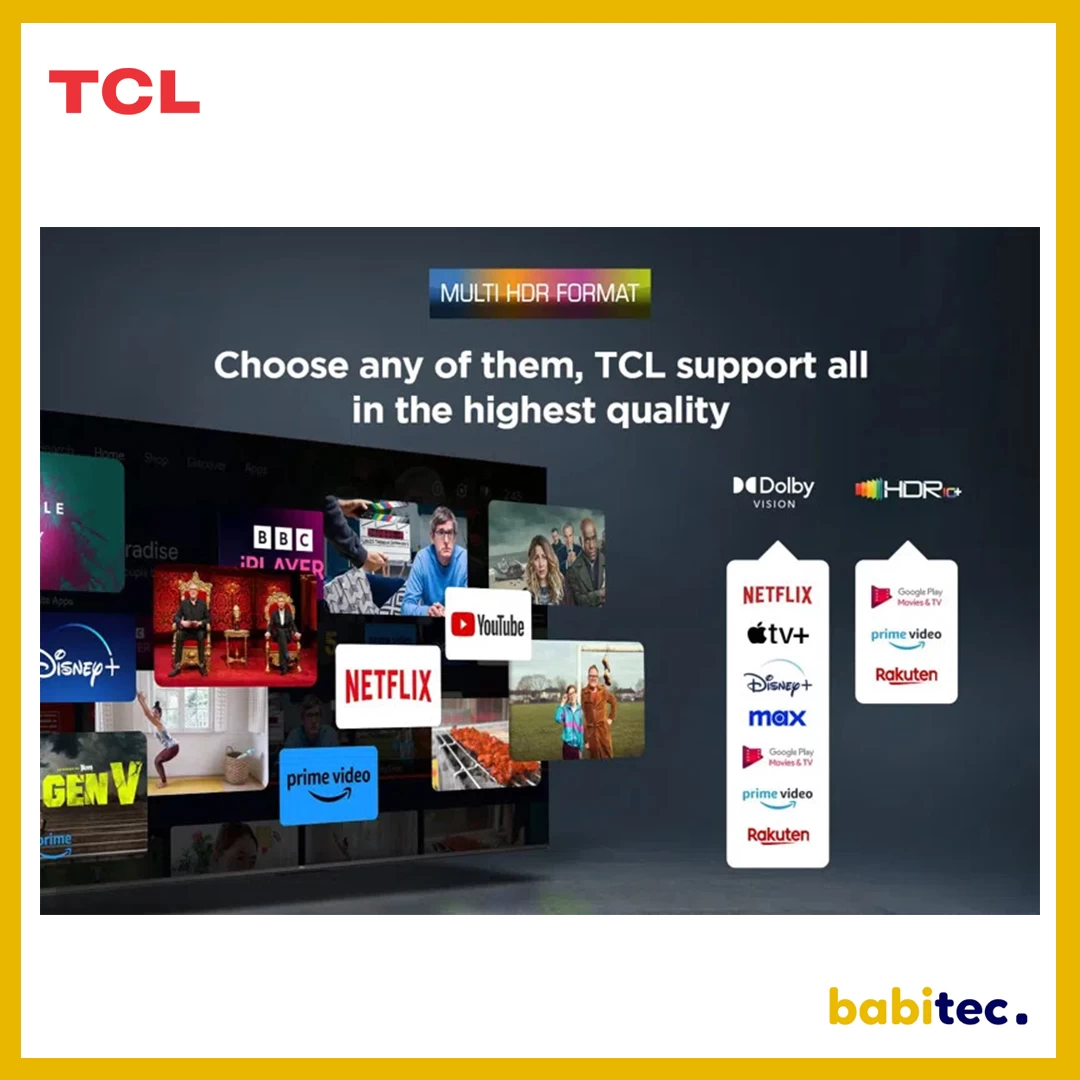 The TCL TV LED 43" - Android TV - Google Play - YouTube - HDR 10 - Micro-Dimming offers a high-quality viewing experience with its 43-inch LED display. Here is a brief description: